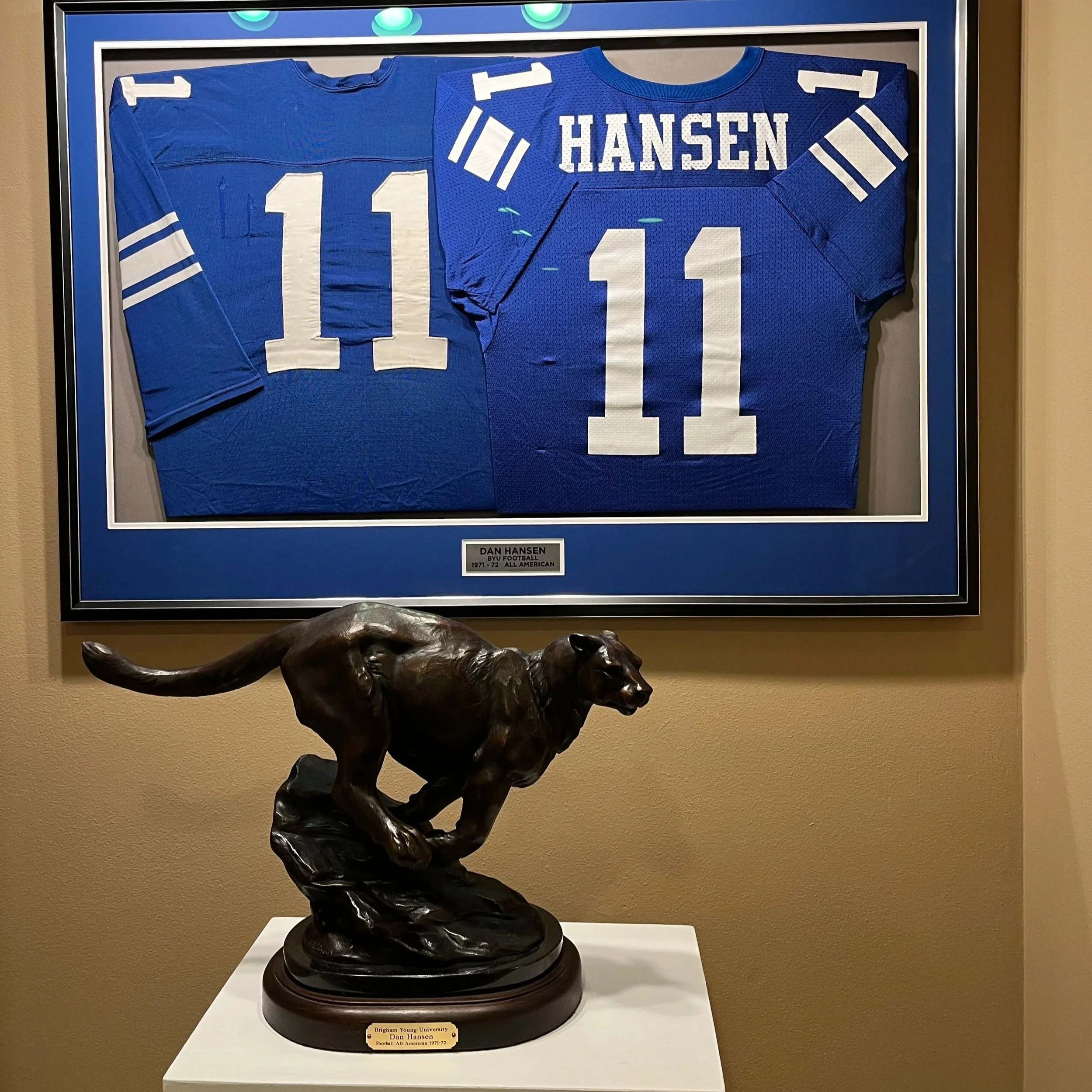Former BYU Football star, Dan Hansen, who still holds the all time NCAA record for the most tackles in one game, has teamed up with renowned artist, J Michael Wilson, to create something special for families, alumni and fans. Dan Hansen was LaVell Edward’s first Team Captain and has chosen to memorialize the rich history of the cougars in the creation of this beautiful piece of art. Be part of the legacy and get your limited edition bronze cougar today.